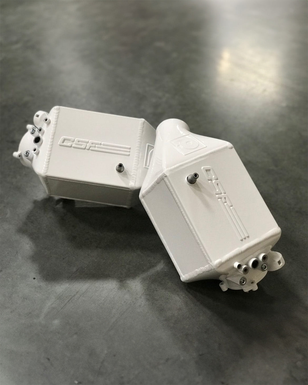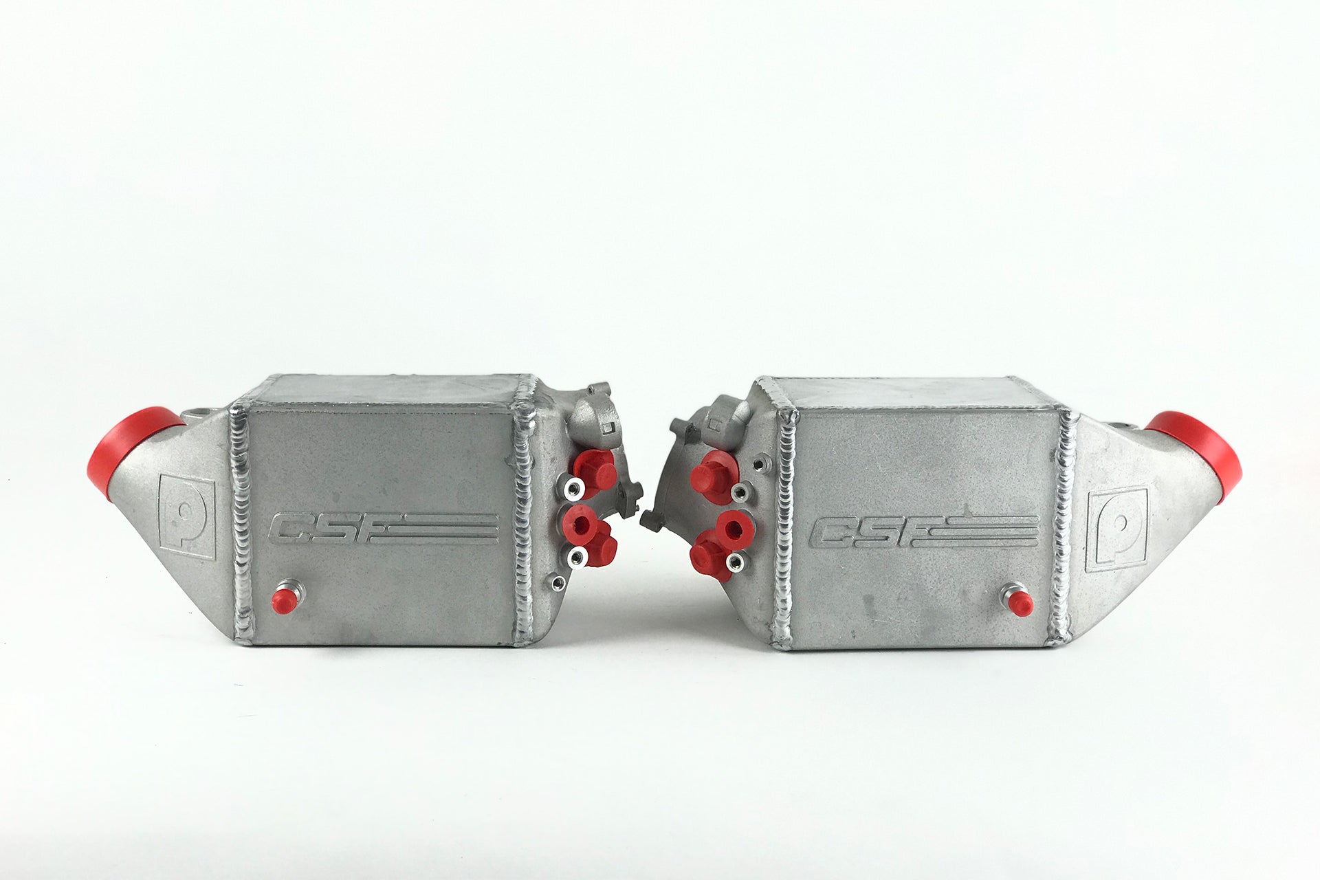 CSF's Twin Charge-Air-Cooler Set is purpose-built to manage the extreme heat generated by the BMW S63 Twin-Turbo V8 engine in the F1X M5/M6. This dual-cooler configuration delivers superior thermal management for sustained high-performance driving.
