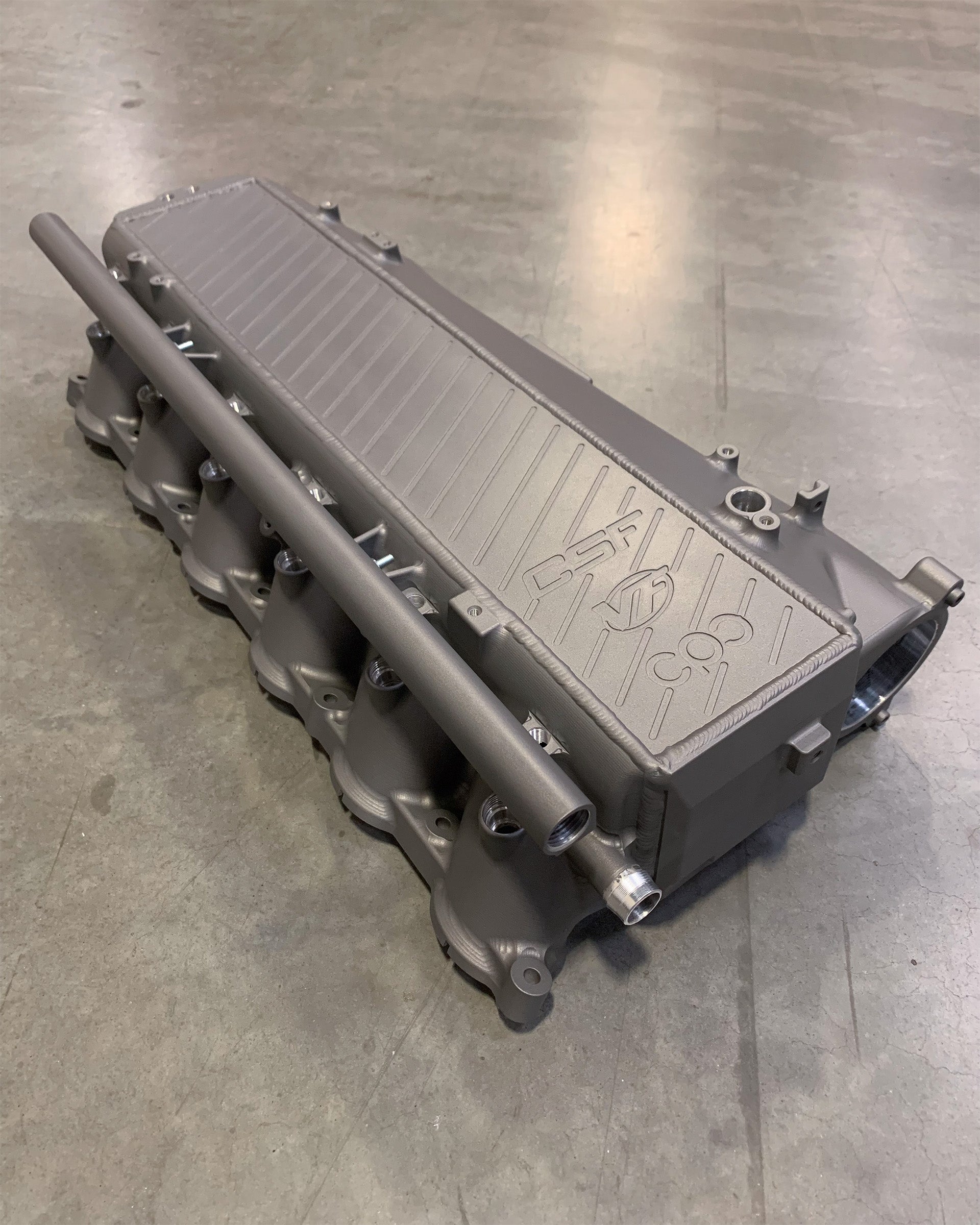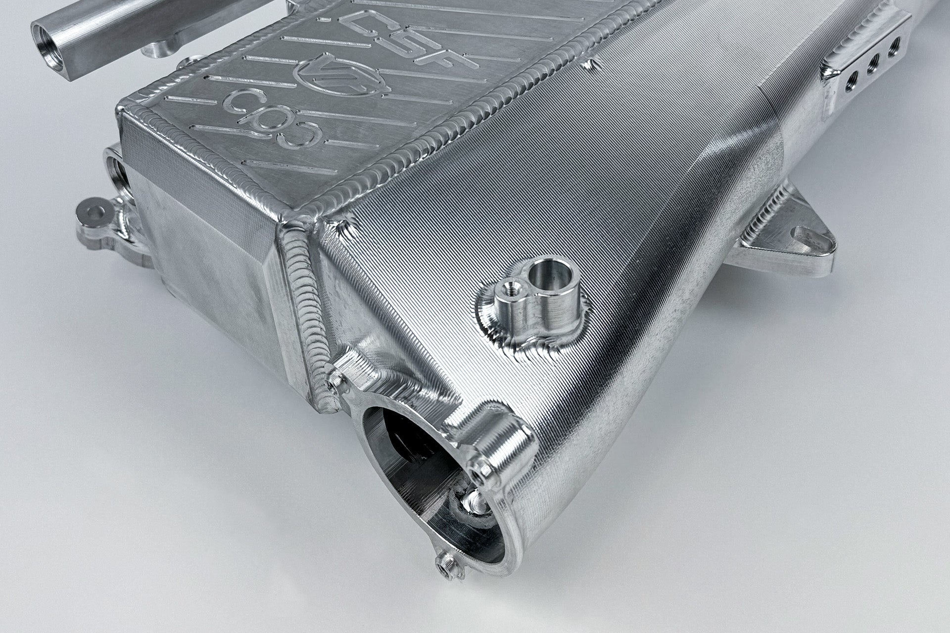 - CSF raw billet charge air cooler manifold with welded inlet divider