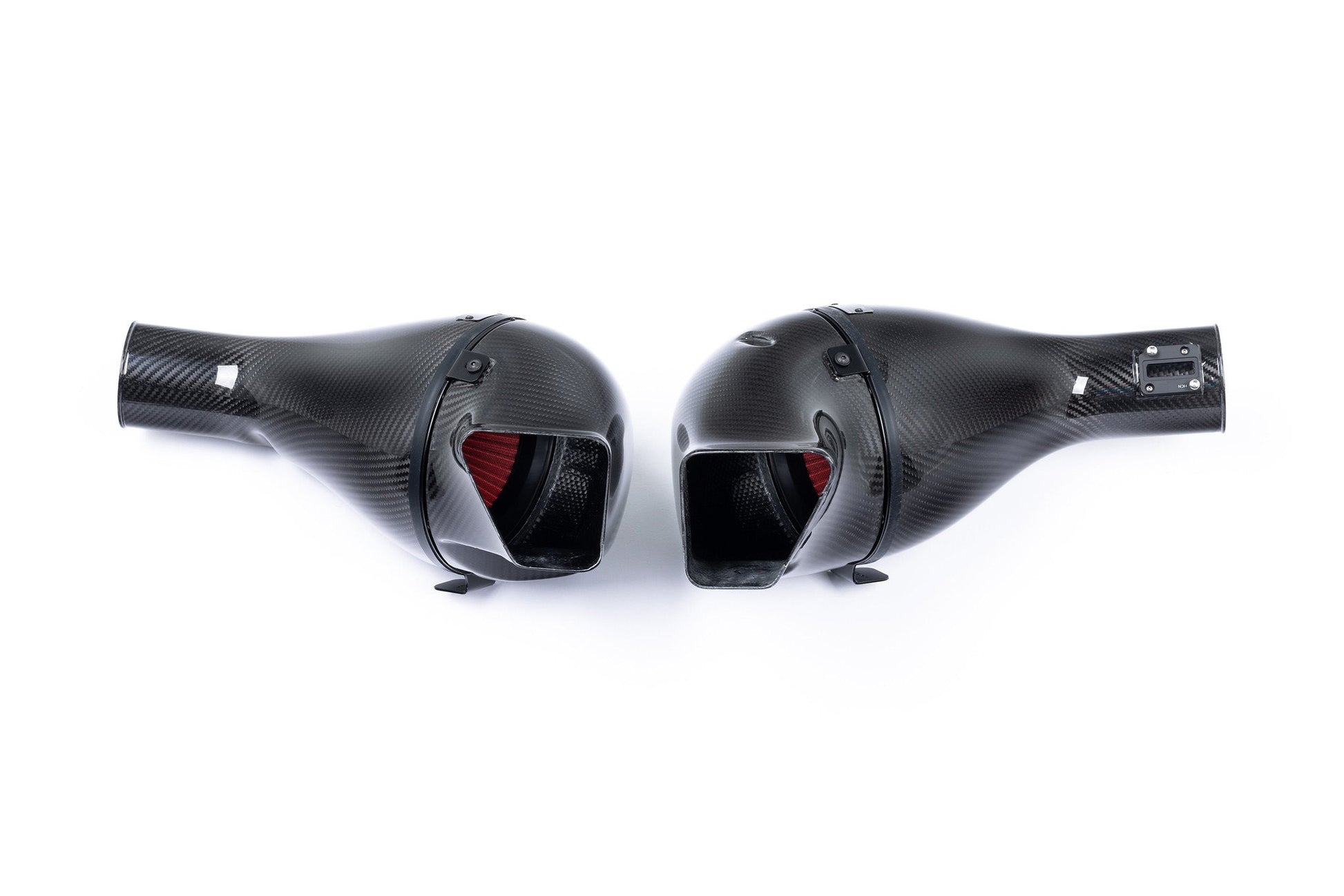 The Eventuri Audi S1 intake system replaces the restrictive OEM airbox with a patent-pending Venturi housing designed to optimize airflow efficiency to the turbo. By incorporating a true cold air feed scoop at the front grille and engineered carbon fibre construction, this system delivers the lowest possible inlet air temperatures and maintains laminar flow characteristics for noticeable, repeatable performance improvements.