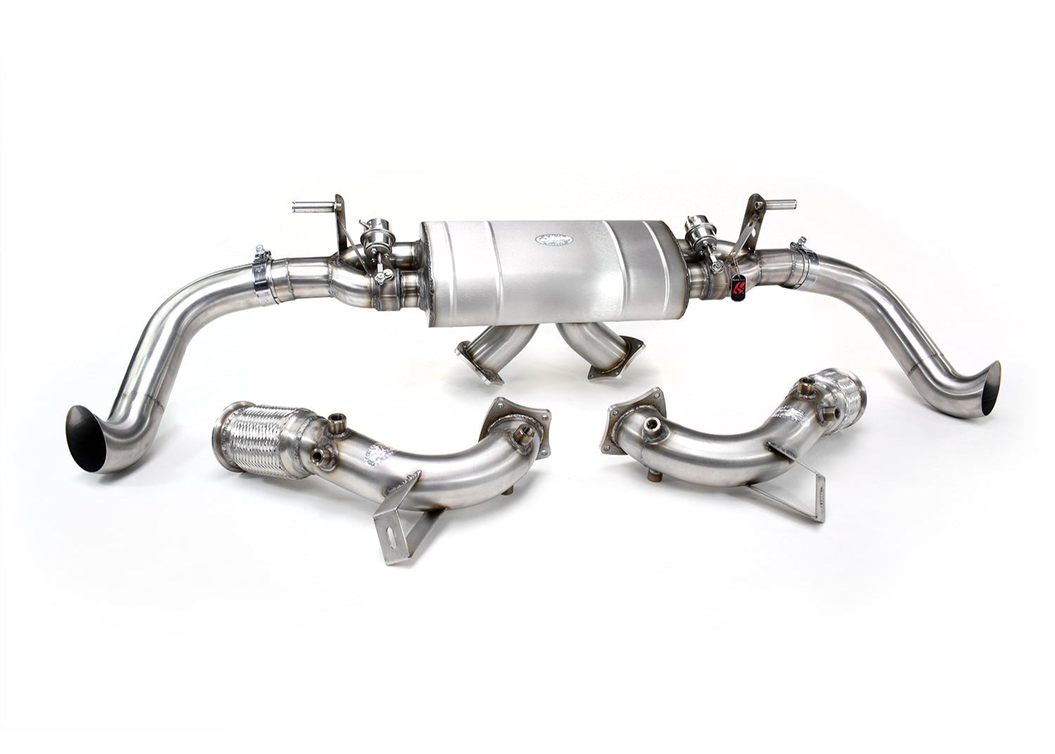 QuickSilver's Sport Exhaust for the Audi R8 V10 (2020+ EURO Spec with GPFs) combines active valve technology with refined engineering to deliver a dual-personality exhaust system. Featuring Sound Architect™ electronic/pneumatic valves, this system provides a civilized note when closed and an aggressive, sporty character when opened—all fully integrated with your vehicle's ECU and driving modes.